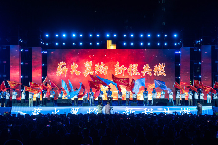 晚会尾声,全场共同高唱《三联歌》和《我和我的祖国》。《三联歌》旋律激昂,唱出了全体三联人的归属感与自豪感;《我和我的祖国》歌声嘹亮,将个人理想与祖国命运紧密相连,也是我校庆祝新中国成立76周年的特别献礼。