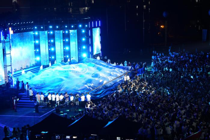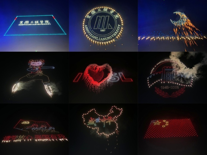 晚会在智慧交通现代产业学院与无人机中心联合呈献的表演中拉开帷幕。以夜空为幕,无人机队列通过精妙的编队变换和灯光效果,在纪念中国人民抗日战争暨世界反法西斯战争胜利80周年之际,象征着回望、传承与希望的图案在黑夜中亮起,展现出学校在应用型人才培养和科技创新领域的特色与活力,寓意着一段新旅程的激情点燃。