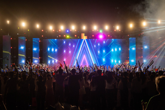 晚会现场还设置了一个温馨而特别的环节。9月22日,学校抽取了2025级新生在报到当日写下的心愿卡,金会庆教授现场为被选中的幸运新生实现心愿,这不仅体现了学校对新生的关怀与重视,更以温暖的方式诠释了“以生为本”的办学理念,让新生们深刻感受到三联大家庭的温暖。数字人“联联”也亮相荧幕,为晚会喝彩。